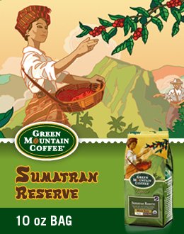 Green Mountain Organic Sumatran Reserve Coffee, Whole Bean, 10oz. Bag (Pack of 3)