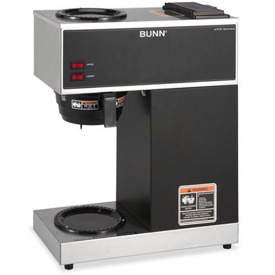 Bunn Industrial Coffee Maker – Low profile – fits most countertops. No plumbing needed. Stainless steel tank with copper tubing. Separately controlled warmers keep coffee hot all day. Includes water pitcher, coffee funnel and 50 filters. Uline stocks a hu