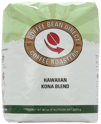 Coffee Bean Direct Hawaiian Kona Blend, Whole Bean Coffee, 5-Pound Bag