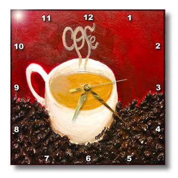 A painting of a white coffee cup surrounded by coffee beans and red background Wall Clock is a wonderful complement to any room in your home or office. Made of durable high grade aluminum. This frameless clock has a high gloss mirror like, UV coated, scratch resistant finish and is suitable...