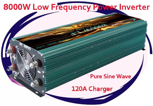 Read more: 8000 Watt Continual 24000 Watt Surge Low Frequency Pure Sine Wave Power Inverter Converter Transformer 12 V Dc Input / 110 V-120 V Ac Output 60 Hz Frequency with 120a Battery Charger Power Tools