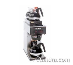 Pour Over Coffee Brewer has a low profile height. Extra fast recovery heater allows another pot to be brewed almost instantly. No plumbing required. Decanters sold separately. 16″Wx1711⁄16″Dx1713⁄16″H. 32 lbs. Brews up to 3.8 gallons per hour 3 warmers 120V