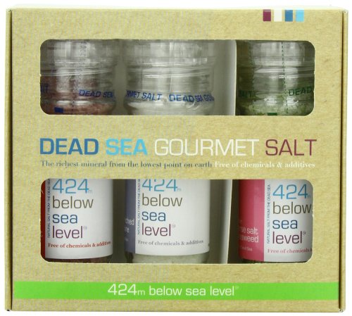 This Salt 424 package includes 3 glass grinders filled with the following Premium flavored Dead Sea salts: 1 – Premium Merlot: Salt 424 soaked in Merlot wine. A special salt with an intoxicating, fruity flavor that turns any dish into a festive delicacy. A special treat for those who...